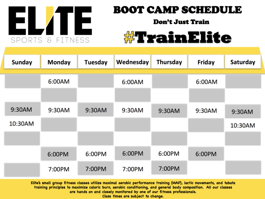Fitness Class Schedule Begins On The First Of Each Month