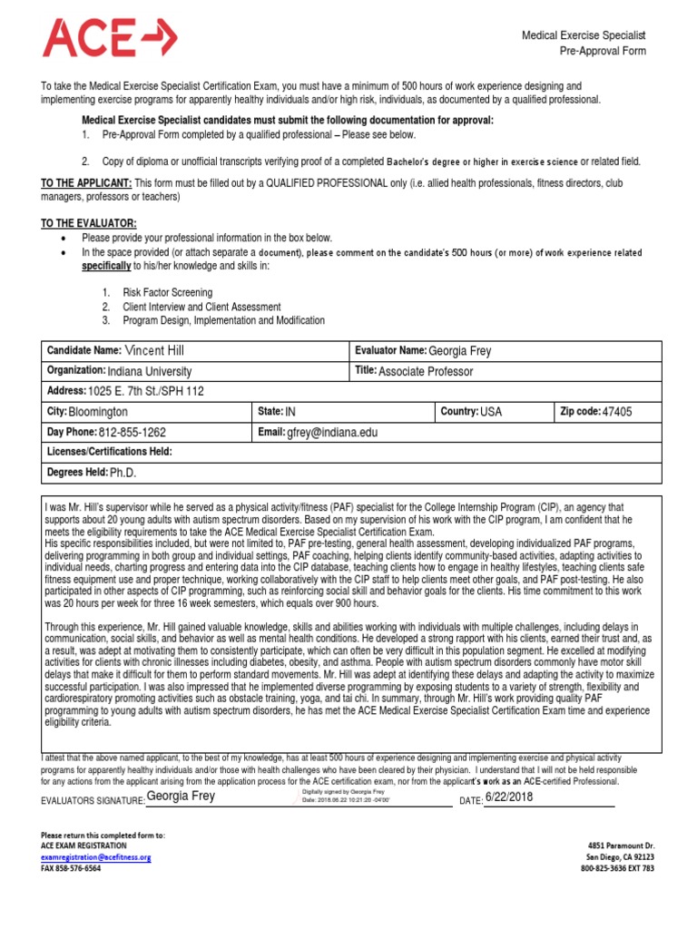 Vince Hill Mes Pre Approval Form 1 Academic Degree Physical