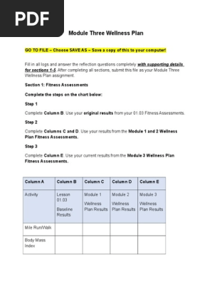Module Three Wellness Plan Physical Fitness Determinants Of Health
