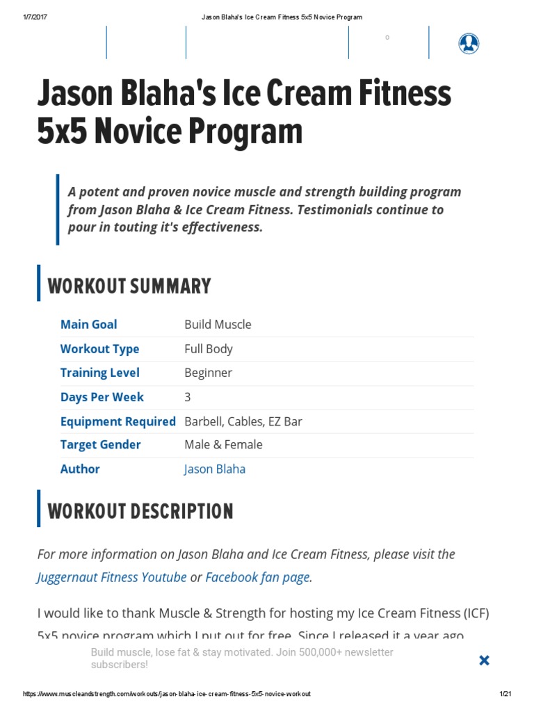 Ice Cream Fitness Jason Blaha S 5x5 Novice Program