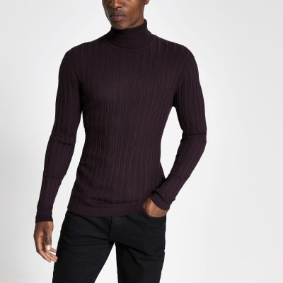 Purple Roll Neck Muscle Fit Ribbed Jumper River Island