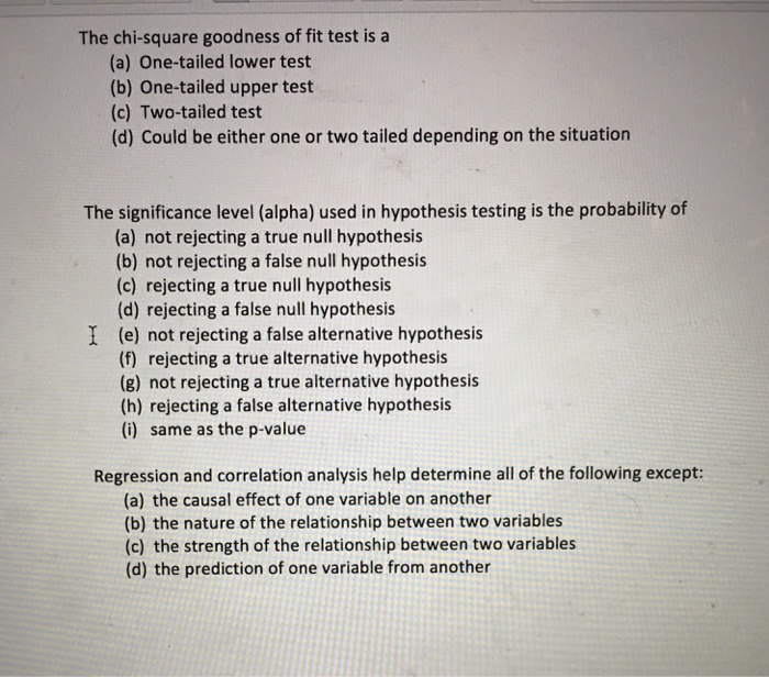 Solved The Chi Square Goodness Of Fit Test Is A A One T