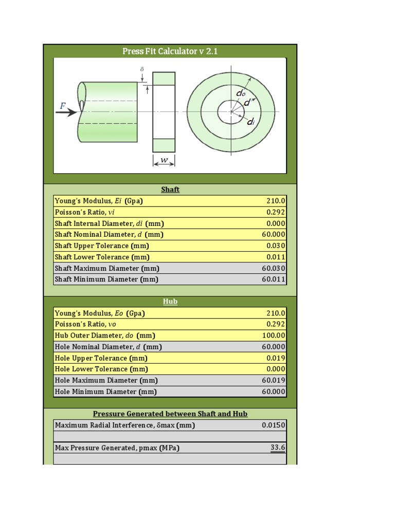 Press Fit Pressure Calculator Engineering Tolerance Applied