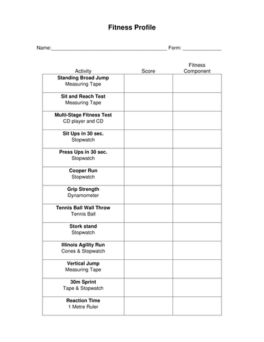 High School Components Of Fitness Worksheet