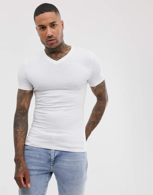 Asos Design Muscle Fit T Shirt With V Neck In White Asos